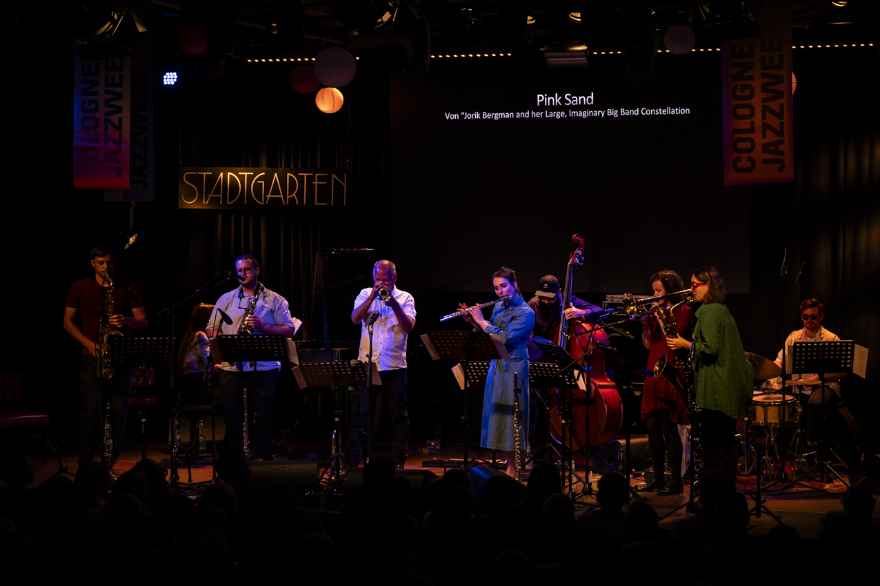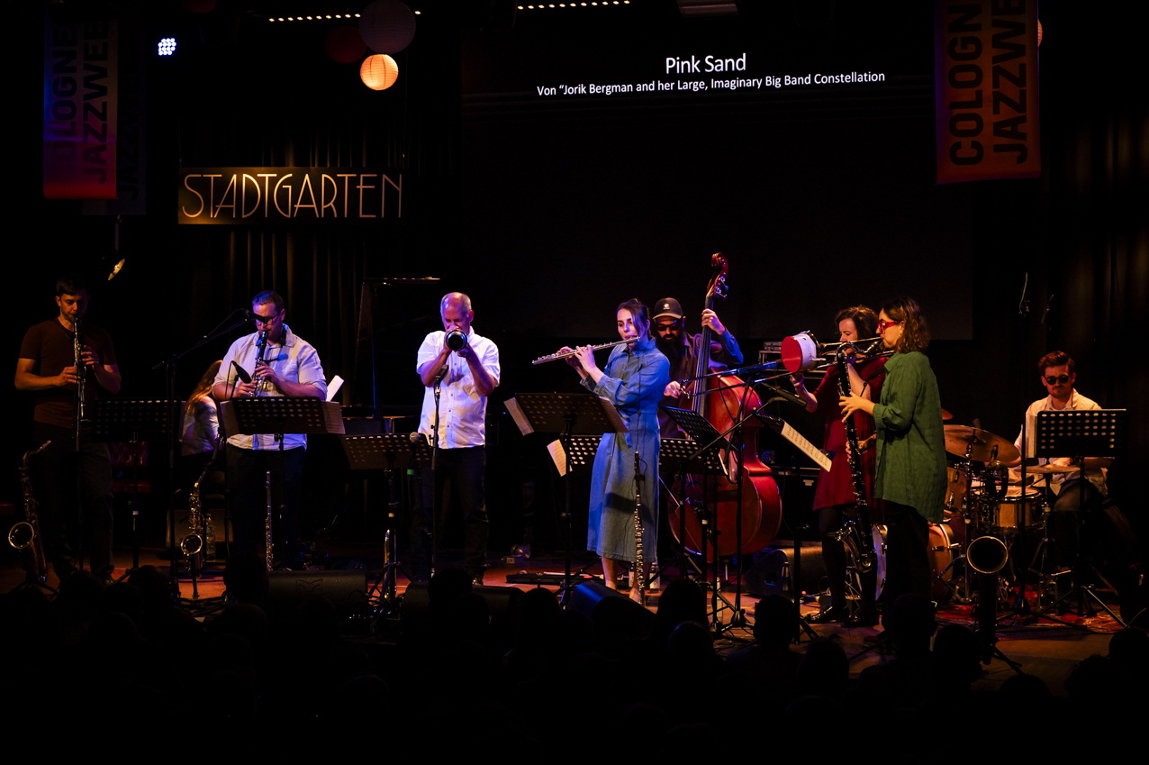 Die Flötistin und Bandleaderin Jorik Bergman wurde 1996 in Leiden in den Niederlanden geboren und lebt seit 2020 in Köln, wo sie sich einen Namen als Komponistin eines harmonisch weit ausholenden Orchester-Jazz gemacht hat. Ihr eigenes Ensemble nennt sie Jorik Bergman And Her Large, Imaginary Big Band Constellation, besetzt mit Musiker/-innen, die ihren Orchester-Jazz mit humorvoller Ernsthaftigkeit umzusetzen verstehen. Zudem hat sie für das Subway Jazz Orchestra geschrieben, mit acht Musiker/-innen aus Köln, Amsterdam, Berlin und Brüssel das „Julius Eastman Project“ realisiert und für das Debütalbum des 101-jährigen Saxofonisten Marshall Allen, „New Dawn“, die Streicher für „African Sunset“ arrangiert. „Die Qualität und Originalität sowie die farbige Differenziertheit ihrer kompositorischen Arbeit für größere Ensembles ist außergewöhnlich, und als Flötistin repräsentiert sie eine eigene und im Jazz-Kontext eher rare Stimme“, heißt es in der Begründung der Jury des „Horst und Gretl Will Stipendiums für Jazz/Improvisierte Musik“.