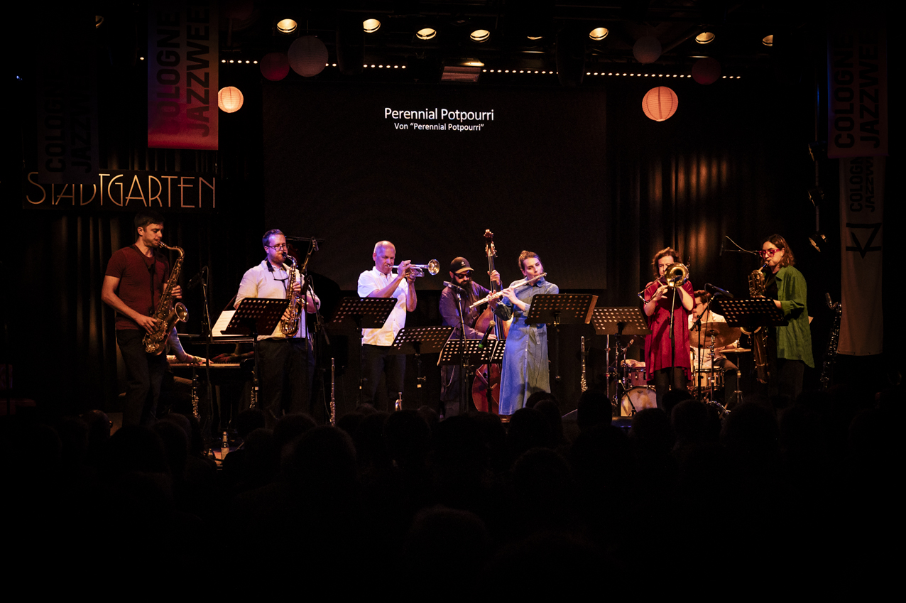 Jorik Bergman (flute, composition), Martin Gasser (alto saxophone), Jens Böckamp (tenor saxophone), Kira Linn (baritone saxophone), Matthias Bergmann (trumpet), Shannon Barnett (trombone), Clara Vetter (piano), Reza Askari (bass), Alexander Parzhuber (drums)